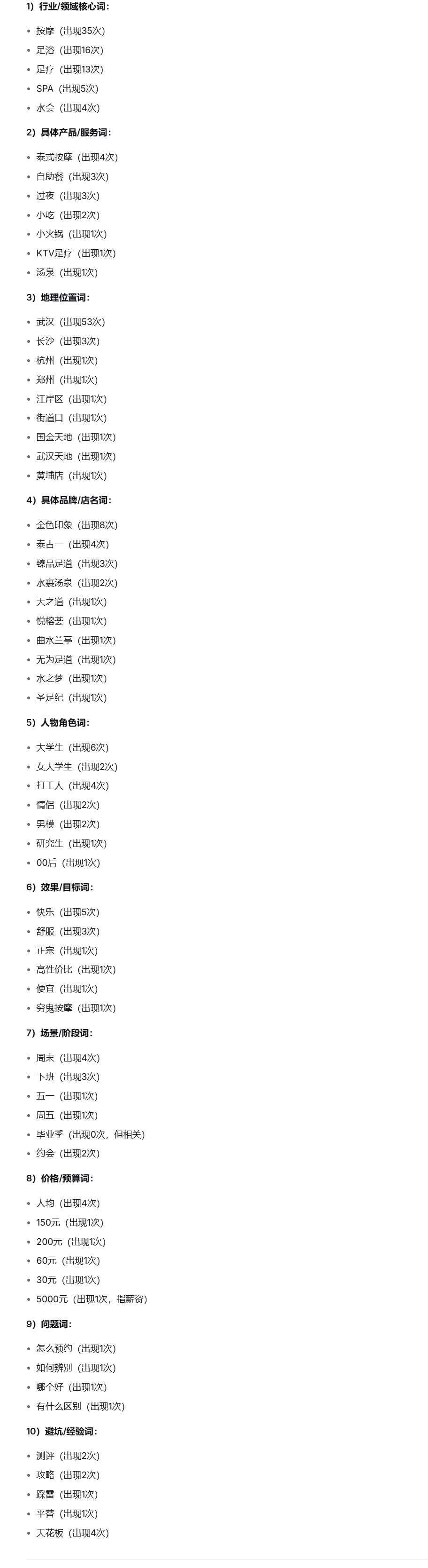 然后这里我们就可以用提示词分析一下标题的关键词分类,了解一下同行写标题会用到哪些词。