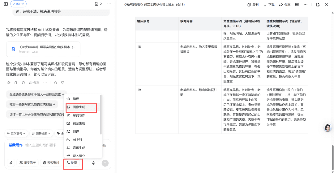 2.为每一句歌词生成对应的文生图提示词与对应的图生视频提示词