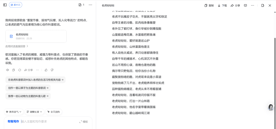 宠物猫一病几千块跑不了,不如做了一个医患疾病表品种猫被割种疾病轻扰,狸花猫打打哒,连着脸就问你怕不怕?狸花猫哒哒哒,打出一片自己的天下,梨花猫哒哒哒,他名字里就带着中华花猫哒哒哒,飞檐走壁,勇敢闯天涯。学习这个歌曲的风格和结构特点,帮我生成老虎的科普歌词