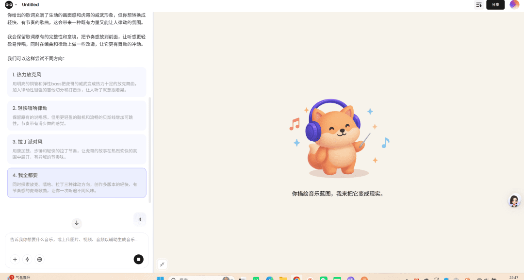 tunee会生成四种类型的歌曲来供我们选择,可以选择全部生成,挑选合适进行下载
