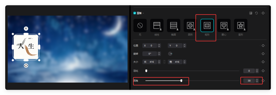 3.导入书籍封面,先拖入一张封面,缩放36%,添加矩形蒙版,拉圆角,