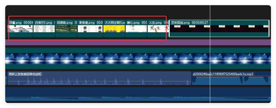 5.调整好时长之后,把其他书籍封面直接拖入替换(会自动复用已有的封面设置)要讲的书籍封面放最后一个与音频长度一致