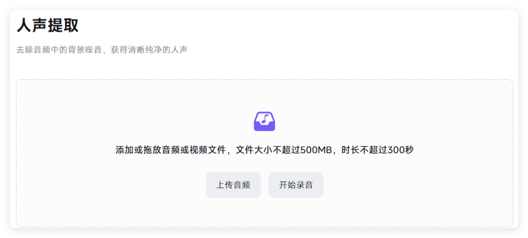 5. 支持人生提取(去除音频中的背景噪音,获得清晰纯净的人声)