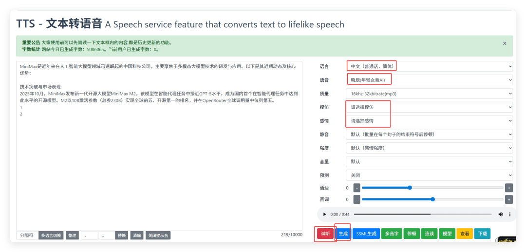 1.浏览器输入:https://www.text-to-speech.cn/