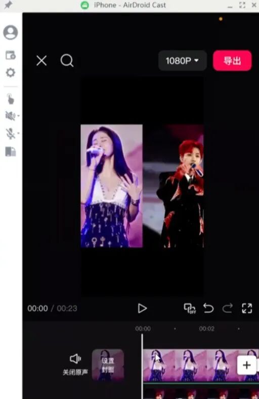 4. 把两张歌手照片通过”画中画”功能叠加上去,一左一右或者一上一下摆放,注意别挡住重要内容