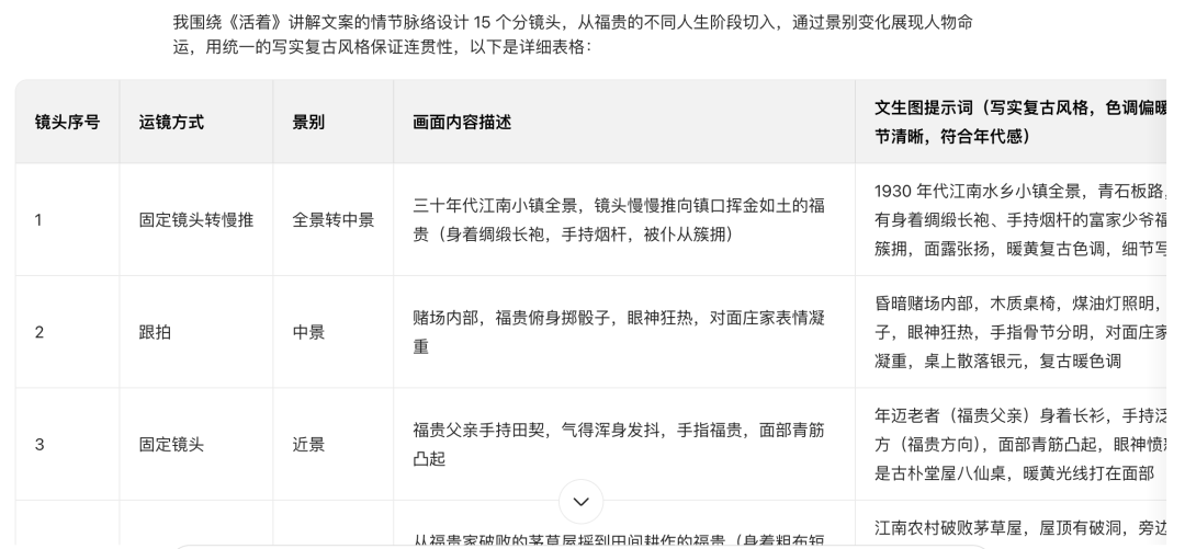 下面看看豆包给我生成的部分分镜头脚本如下: