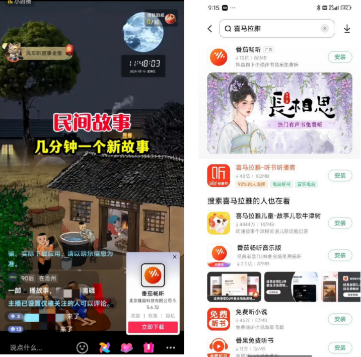 QQ⾳乐跟喜⻢拉雅⼆选⼀就可以(⾥⾯有⼤量的⺠间故事,我们直接拿来⽤就⾏)