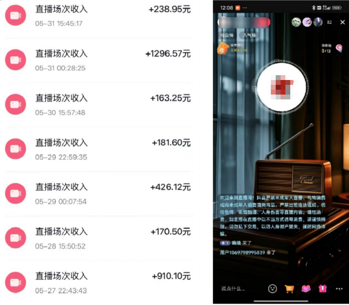 在抖⾳开直播讲故事,场观上万礼物收到⼿软, 完整版项⽬从0-1详细拆解!