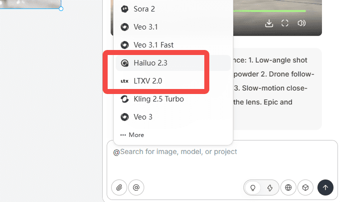 除了图片分层编辑,Lovart 这次还接入了两个全新的视频生成模型:Hailuo 2.3 和 LTX 2