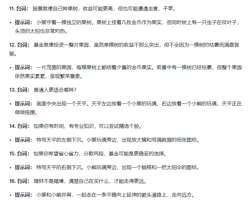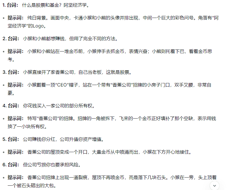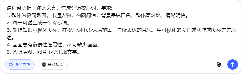 3. 制作知识可视化图标,在提示词中表达清楚每一句所表达的意思,用可视化的图片或动作或图标等等表达。