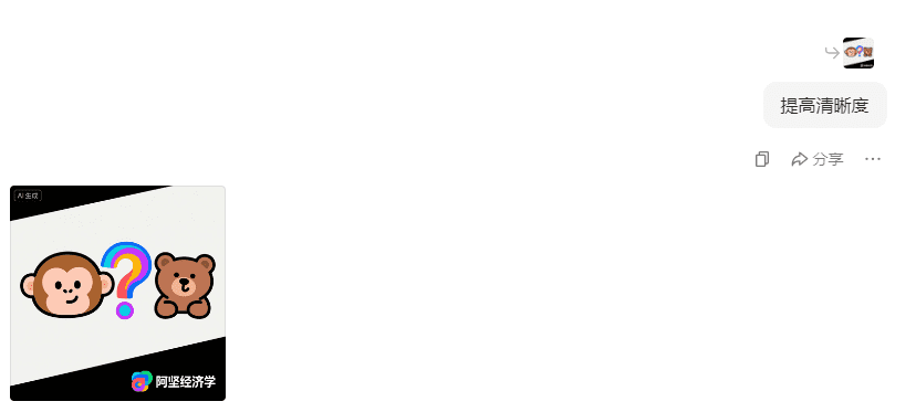 2.等待生成完成后,点击右上角的 “变清晰”,把图片拖到桌面,能拿到无水印的图片。