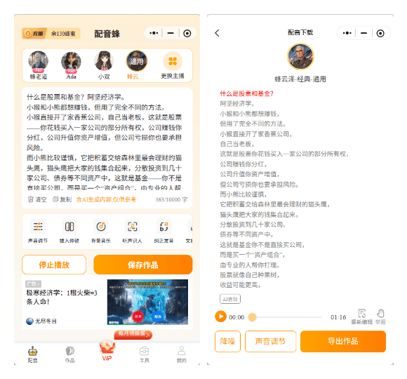 1.打开配音蜂小程序,粘贴文案,选择合适的音色,点击生成音频。