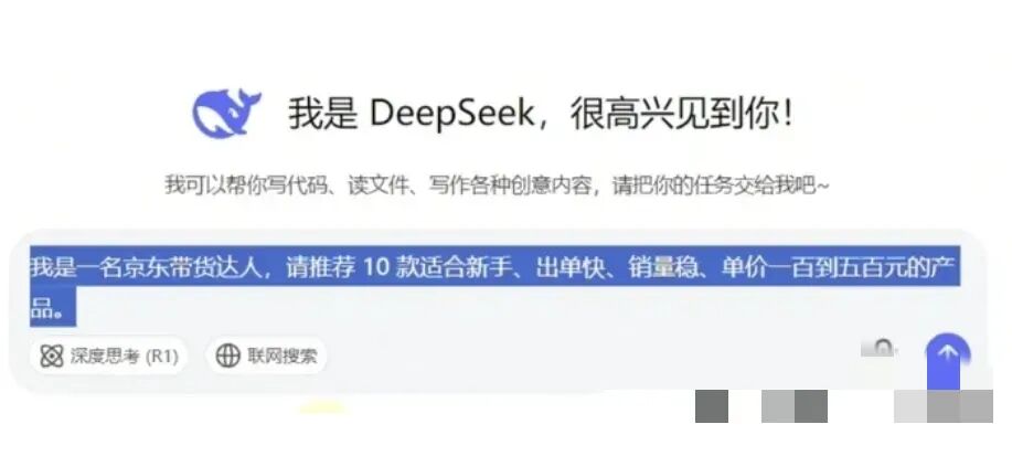 4、发布视频打开deepseek,输入下面指令,打开思考模式,让Ai帮你快速选品。