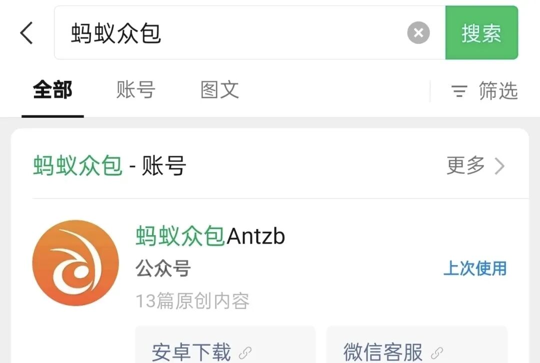 首先我们在微信上搜索:蚂蚁众包,目前看到只支持安卓。