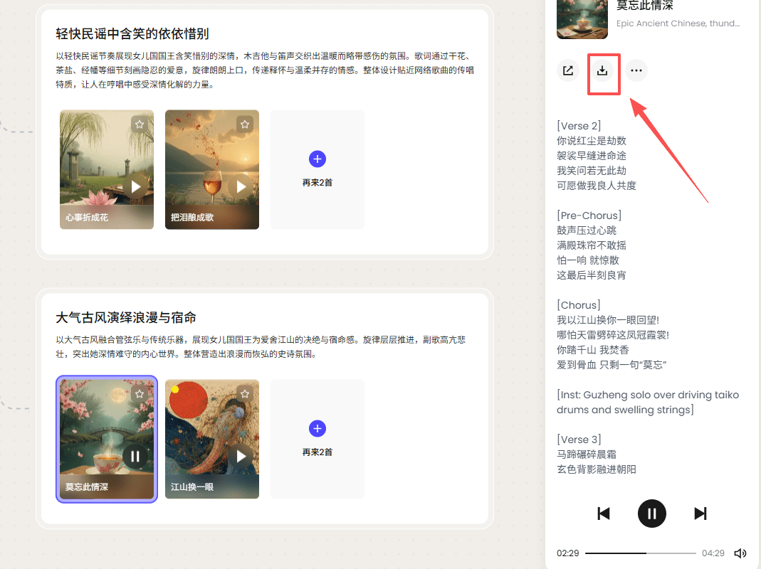 点击下载按钮,将歌曲下载下来