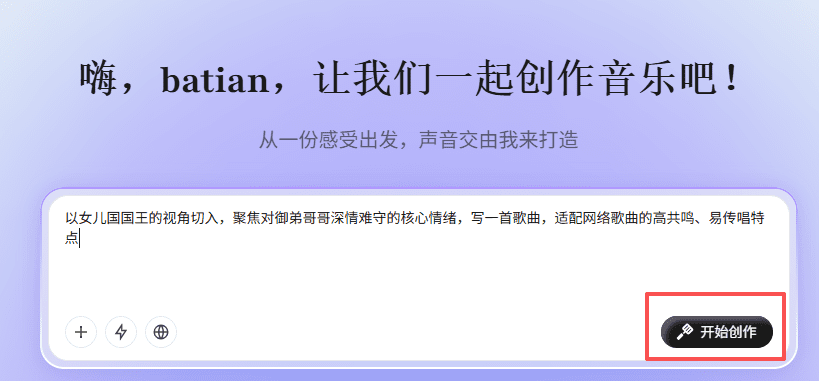 点击开始创作,这时候tunee就会全自动写词,作曲,成歌,一条龙服务