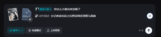输入角色说的话和动作描述词。