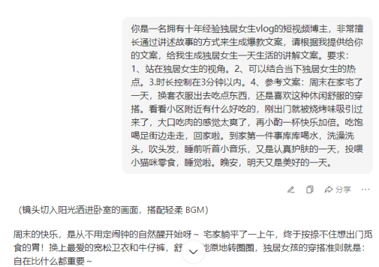 然后我们会得到豆包生成出来的文案: