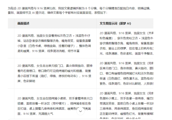 根据豆包生成的文案,输入以下指令来生成分镜。