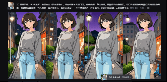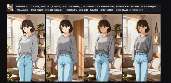 根据获得的分镜表格,在即梦里面直接输入我们刚刚得到的提示词就可以,假如不满意的话就重新生成或者修改提示词。
