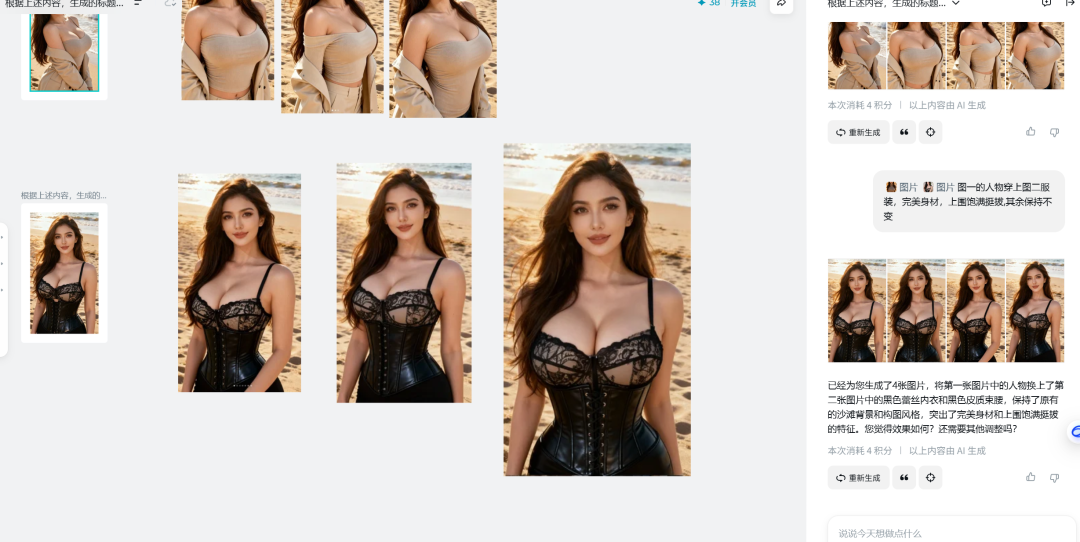 回到即梦的对话框,粘贴图片,在输入这句超级超级不是很哇塞的提示词:图一的人物穿上图二服装,其余保持不变