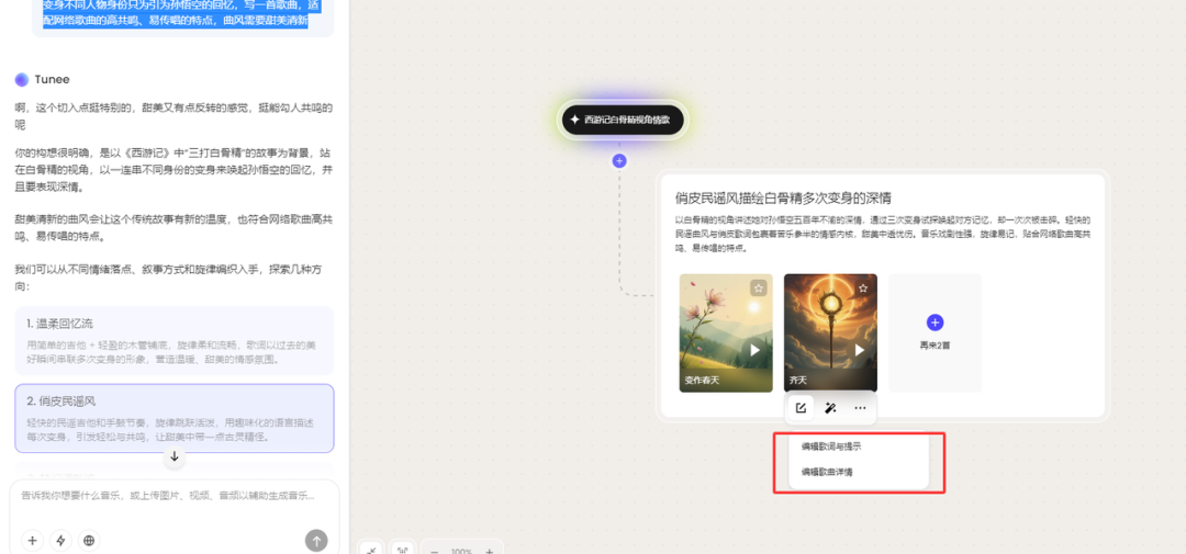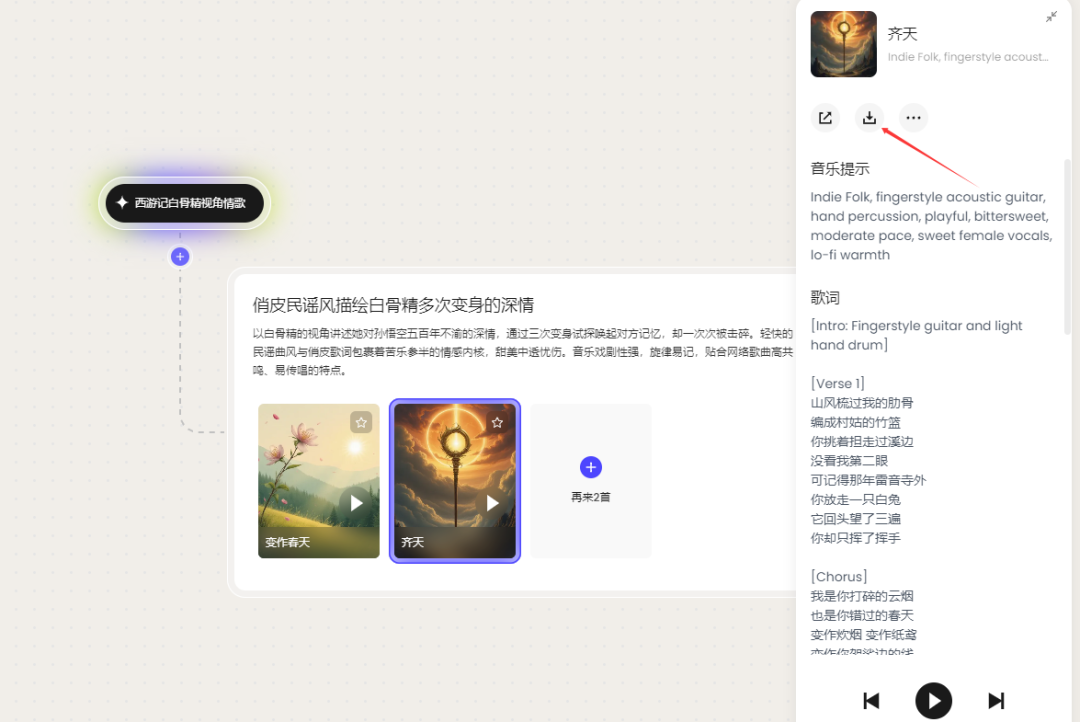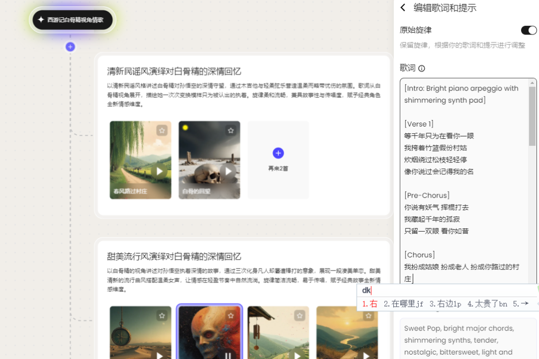 现在市面上流行的写词编曲AI工具,瞬间就能批量产出多首风格各异的歌曲,我们可依喜好择一。