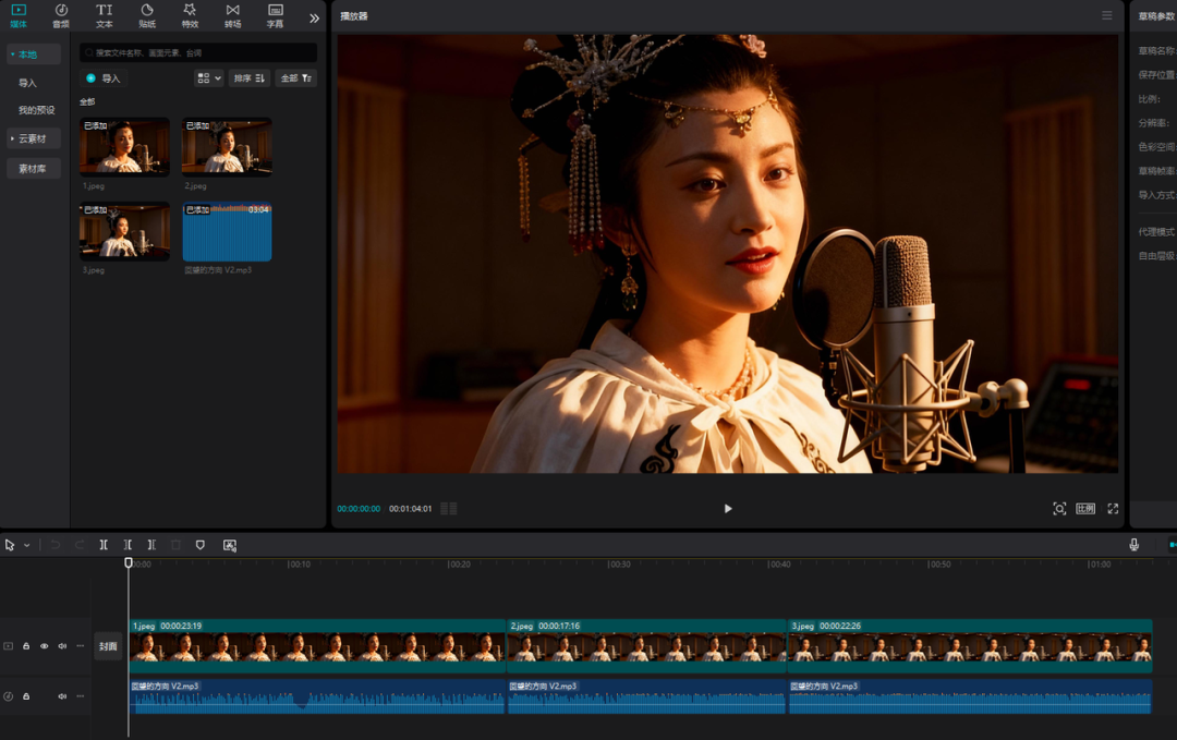 在返回即梦AI后,选择对口型模式并上传音频与图片
