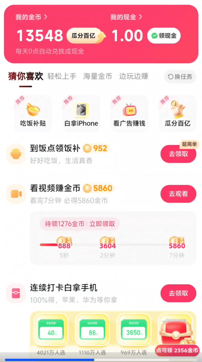回到家,我打开快手,准备弄点金币。