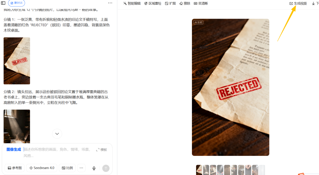 点击图像生成,把deepseek生成好的分镜头复制进去,
