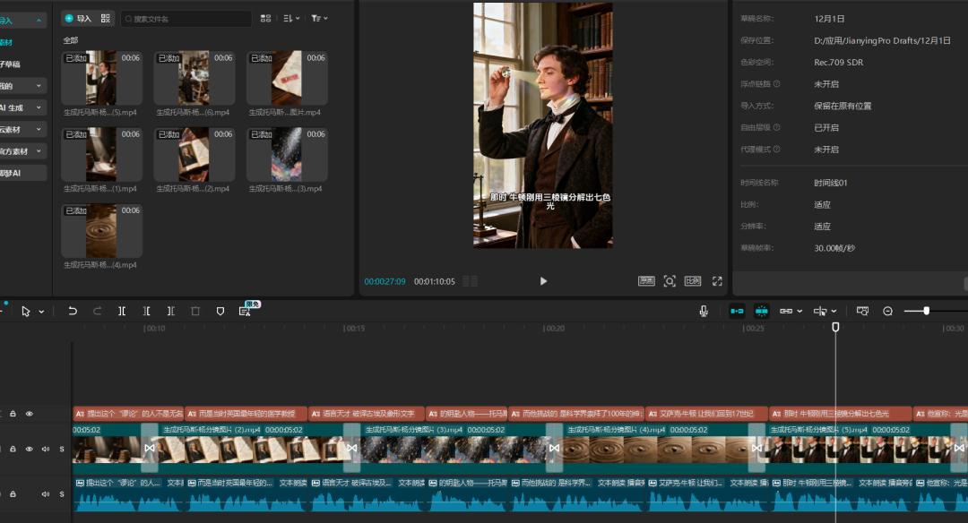 1.用deepseek生成文案脚本2.用豆包批量生成图片3.剪映剪辑