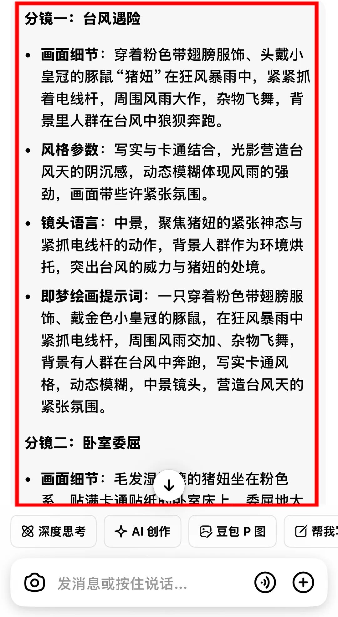 首先:豆包生成作品脚本和分镜