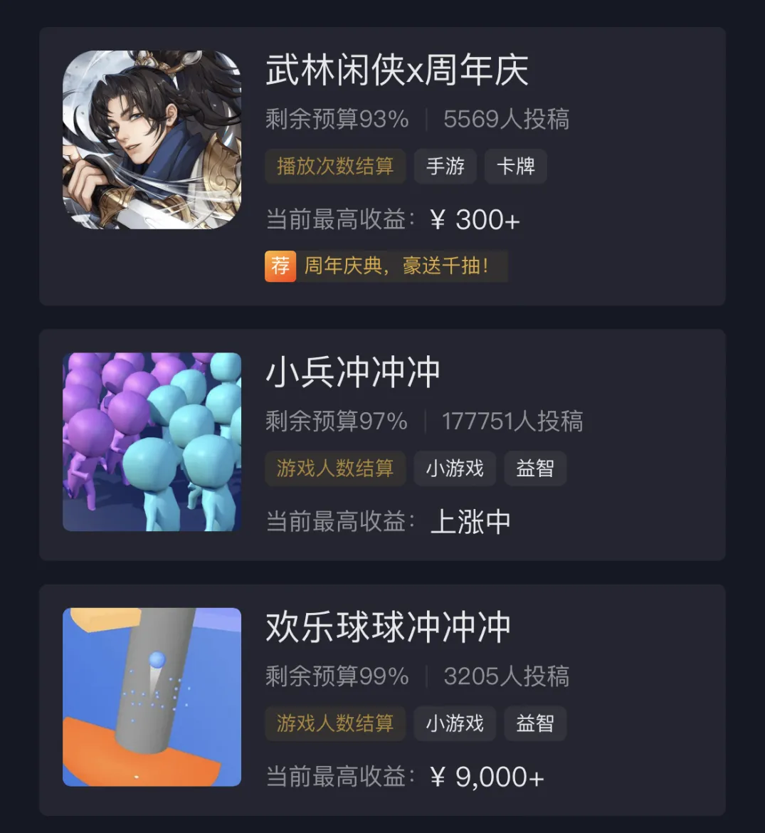 抖音搜游戏发行计划分为小游戏和手游两个板块,非常适合喜欢玩游戏的朋友的,主要是引导下载,只要用户下载,就有佣金,按CPS结算。