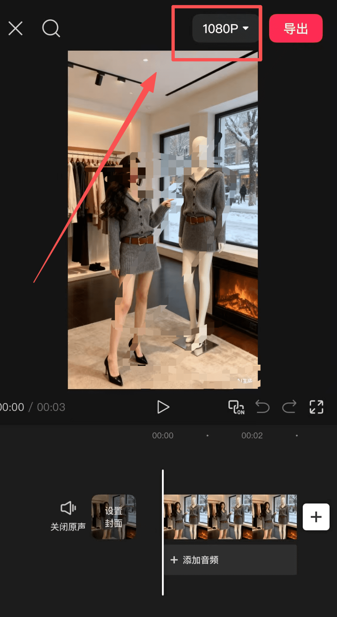 找一个支持动图的手机,打开剪映,导入做好的视频,然后点右上角的分辨率图标,如下图所示: