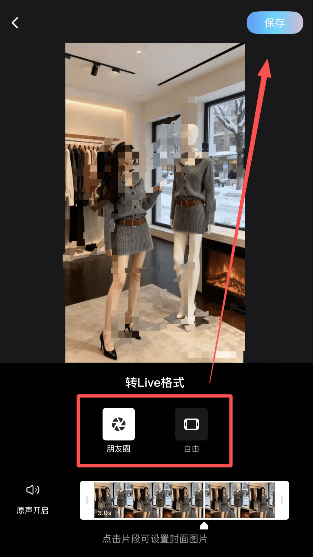 然后导入我们做好的视频,朋友圈和自由这个都不影响,随便选一个就行,选完点保存即可。