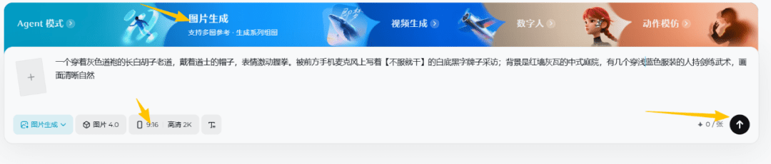 打开即梦–点击【图像生成】,输入提示词,比例9:16