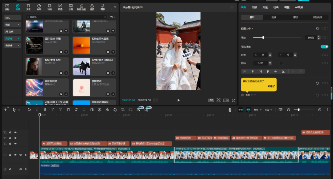 最后把生成好的视频全部下载,导入剪映剪辑,