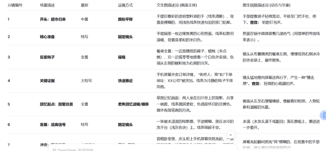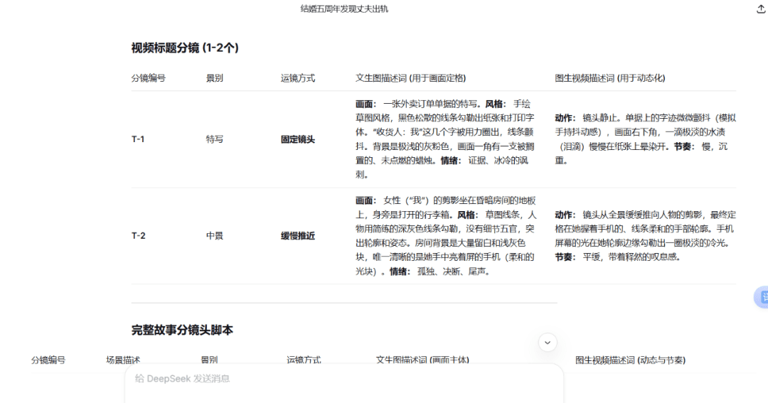 接着继续对话,让deepseek生成分镜头脚本,