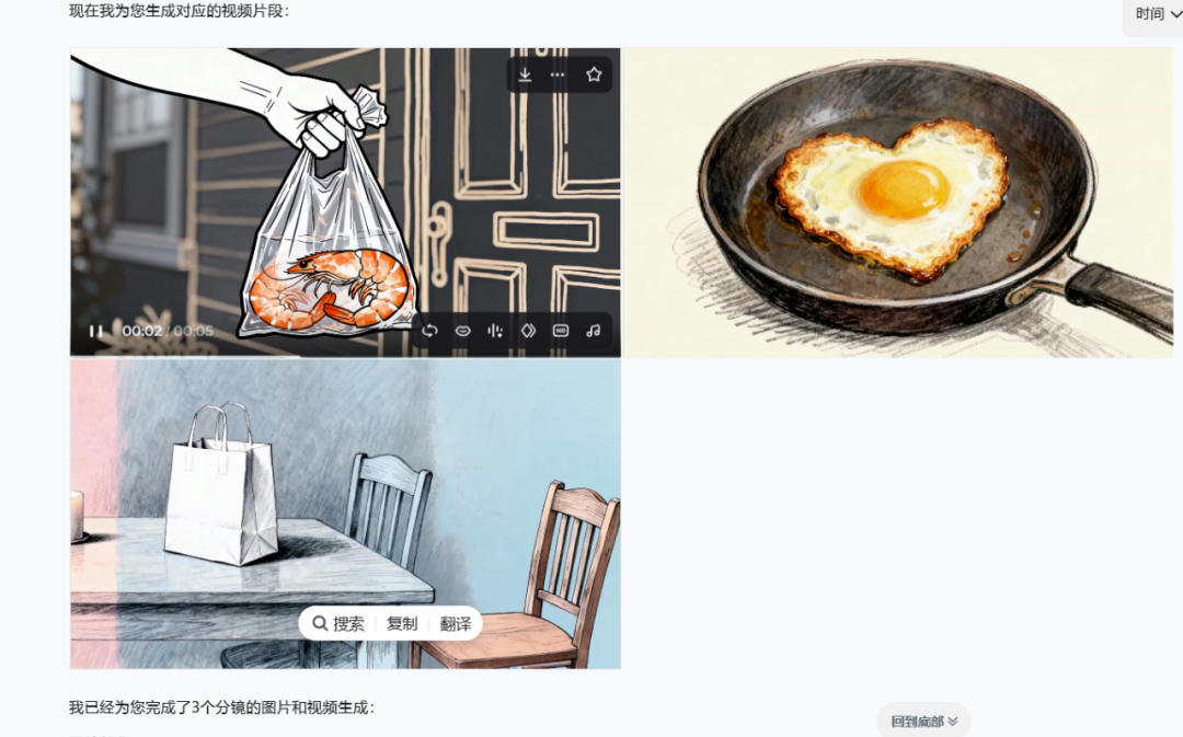 这里为了展示我只生成了3个分镜头画面,其他画面也是用这个方式去生成。