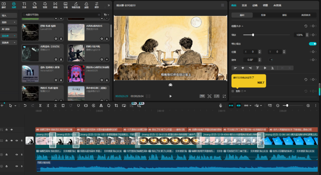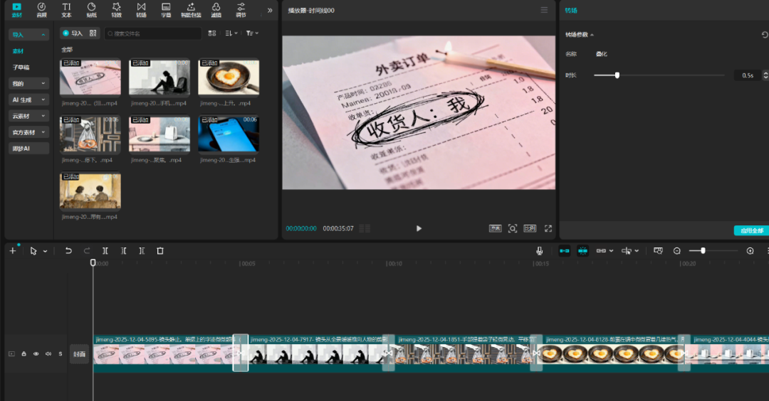 所有生成好的视频下载保存,导入剪映拼接剪辑,