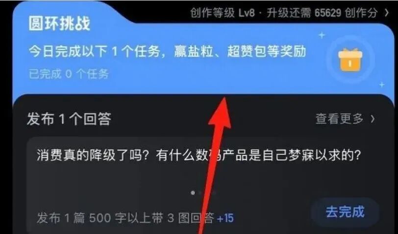 1.打开知乎 APP,进入 “我的” 页面,往下滑找到 “圆环挑战” 入口(不同账号位置可能略有差异,耐心翻就能找到)2.完成挑战任务:有的只需 100 字以上回答,有的要求 500 字 + 3 图,难度都不高。不会写的话,用 AI 生成初稿,再调整语序、补充细节,避免重复就能达标。