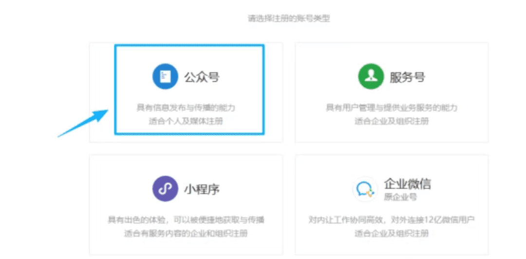 第二步就是去注册一个公众号,这个我就不具体讲了,百度上有非常多的注册教程,大家按照教程一步一步操作即可。