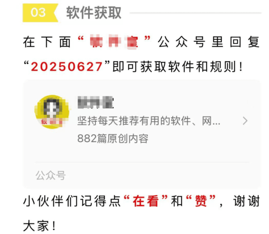 发布的时候记得在每篇文章的文末引导一下如何领取,可以直接参考同行,如下图。