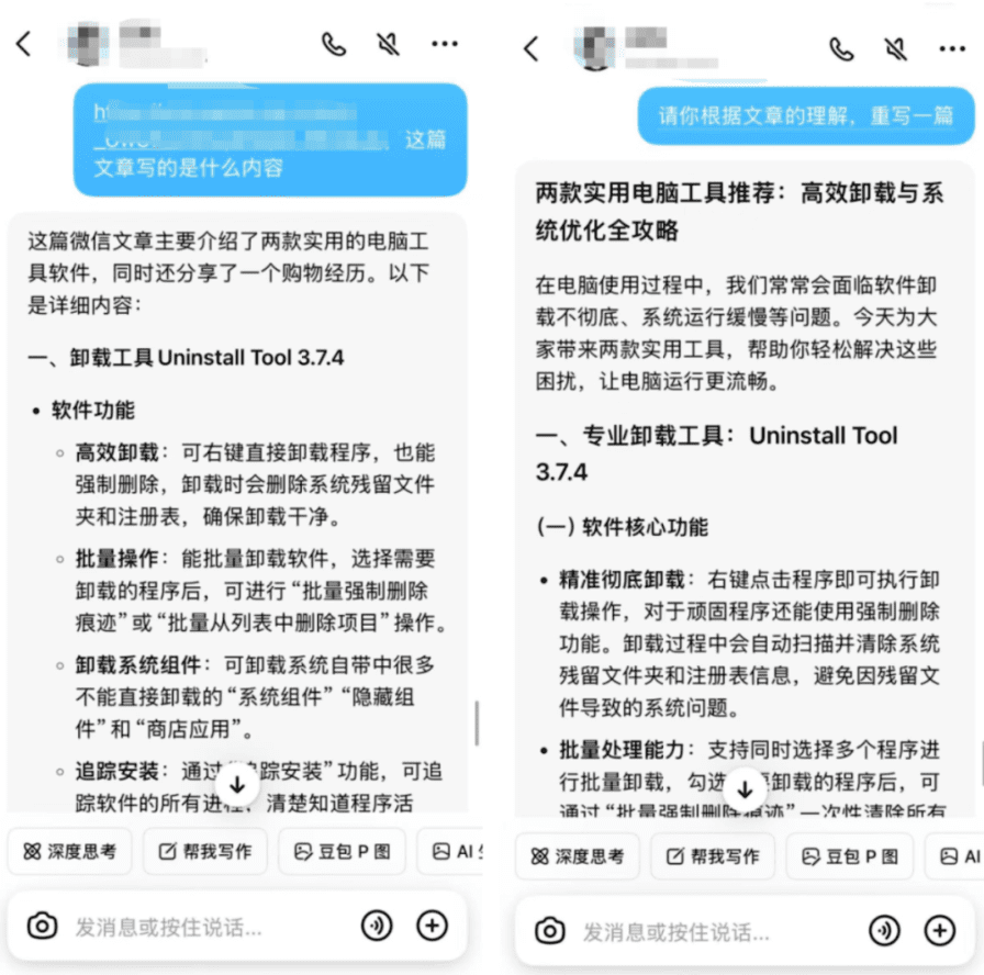 咱们随便找一个同行的文章,复制链接丢给AI,先问AI,这篇文章写的是什么内容,然后再让AI根据自己的理解重新写一篇。