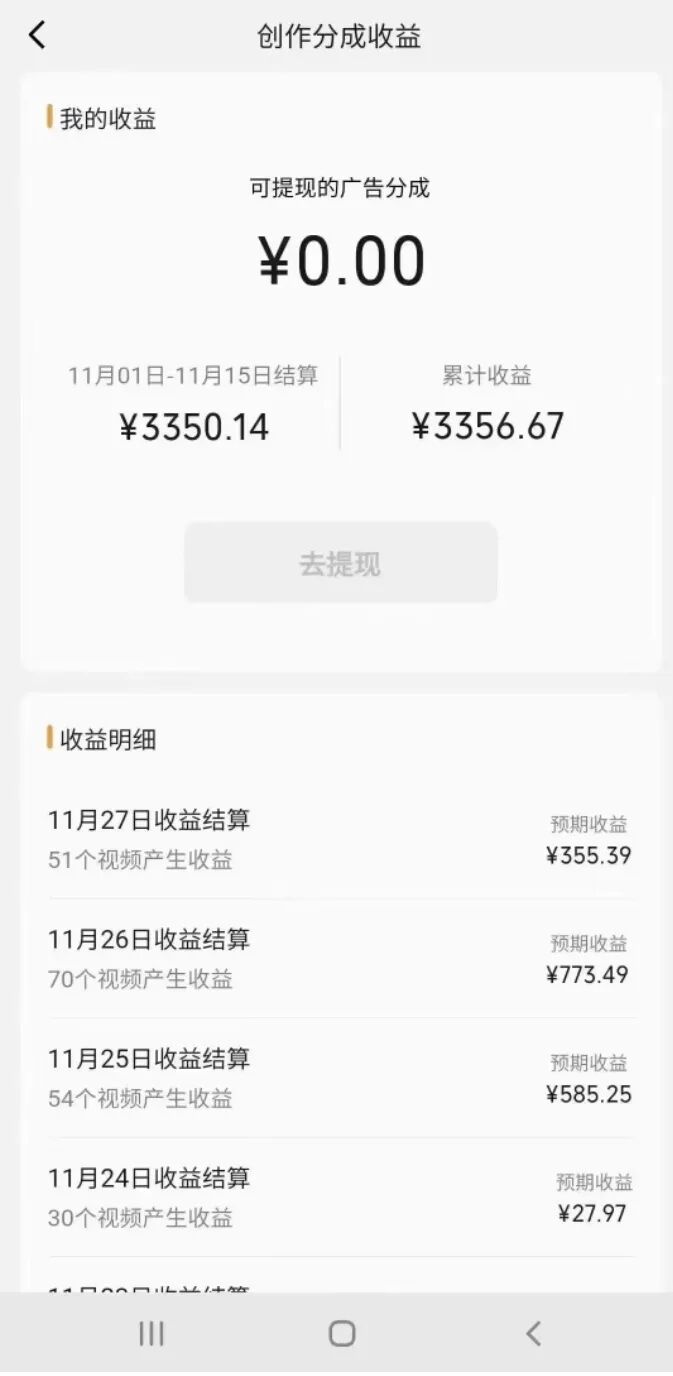抖音推出的活动和之前的中视频差不多,简单来讲就是加入了伙伴计划,在抖音上发不视频,就有播放量收溢,之前有测试过,单价还是挺高的,一万播放20-60之间