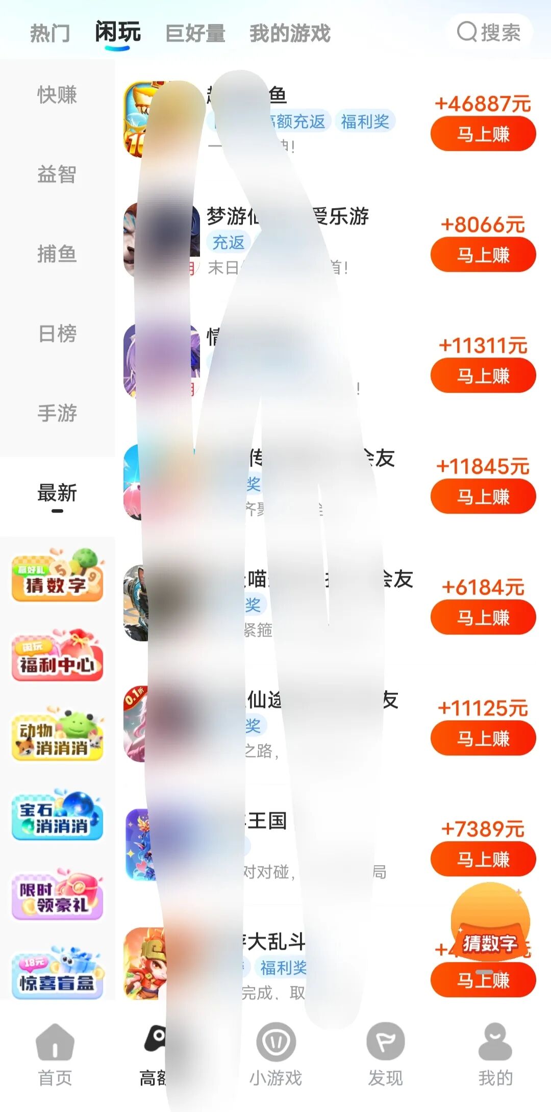 因为这个平台最近上了许多充值10元返11元的小游戏;
