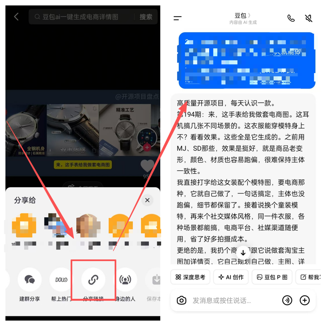选择最近更新的作品,选右下角分享,然后再点复制链接,然后打开豆包,把链接发给AI,就会自动提取出文案。
