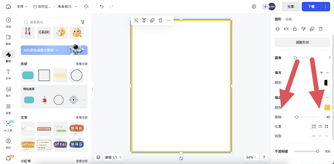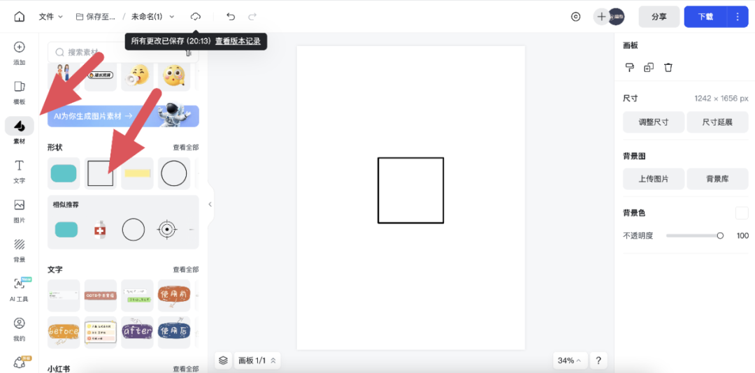 我们新建一张图,比例,选择3:4 ,然后,我们左边有个素材,选择方框就可以了,如下图: