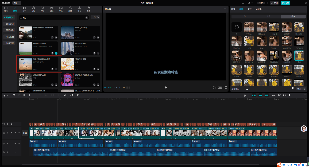 当然,大家也可以使用即梦AI继续生成视频,效果也很不错。但是如果小伙伴们想像我一样偷懒,就可以使用图片+特效,效果也是很不错的。第四步:添加背景音乐