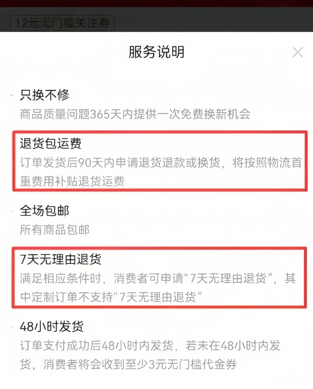 务必要选择那些能够提供七天无理由退货,和有运费险服务的商家。