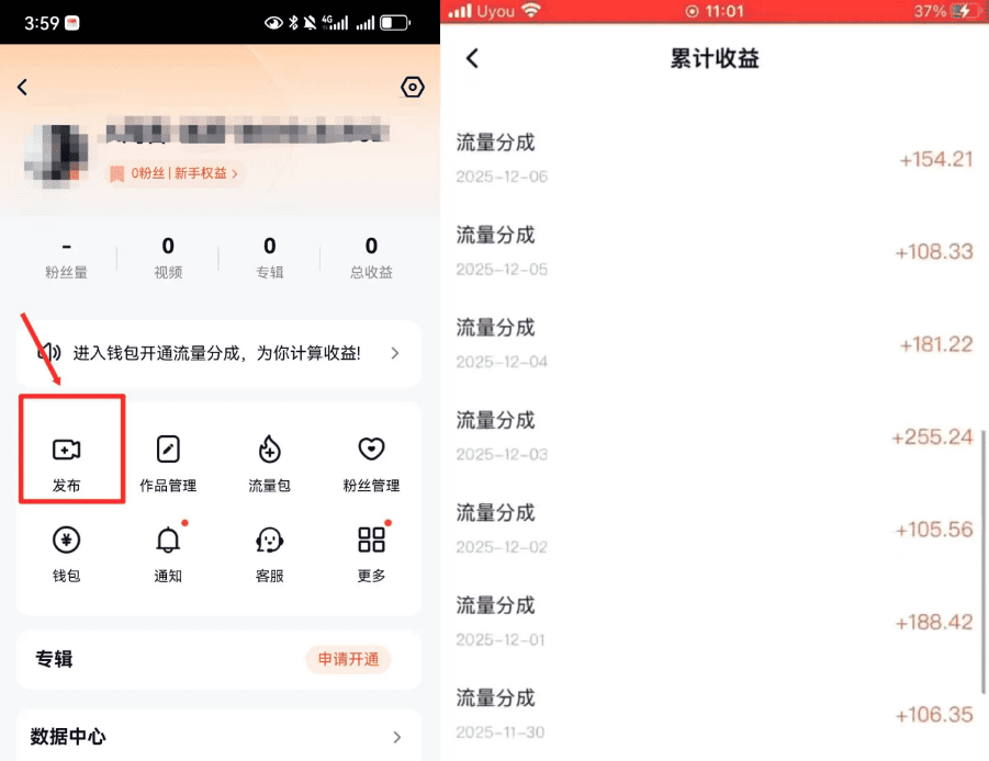 ②发布视频以前一定要确认账号有没有开通创作者权益,不然的话播放量再高,也是不会有任何收益的。